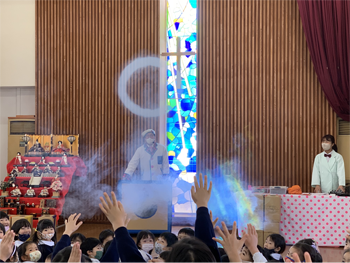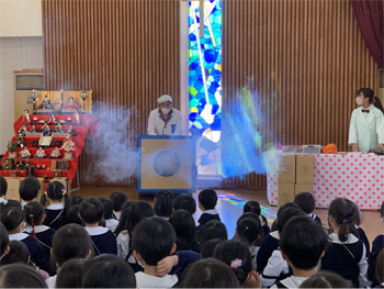 米村でんじろう先生直伝のサイエンスショーを実施しました。サイエンスエンターテイナーのチャーリー西村先生が、子どもたちに楽しく科学の不思議を伝えてくださいました。 |