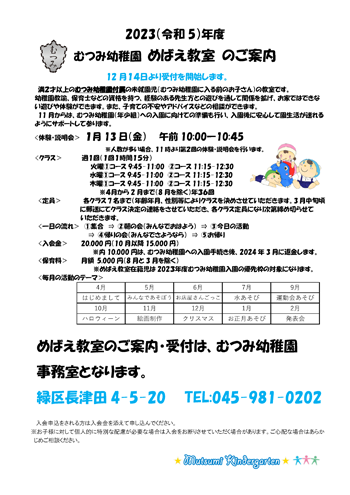 12月14日より未就園児のための「めばえ教室」の受付を開始します。 |