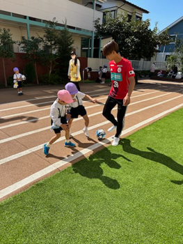 本園の課外活動、サッカースクールを担当している「東急SレイエスFC」とオフィシャルパートナー契約を締結しました。 |
