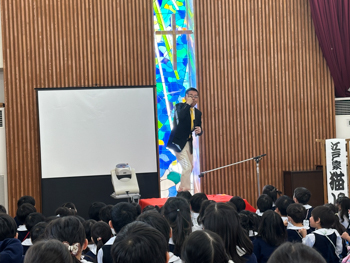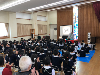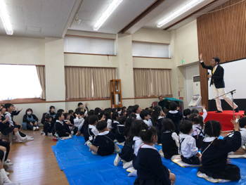 2024年2月14日に卒園イベントとして、昨年度のサイエンスショーに引き続き、今年度は「動物声まね・紙切り演芸ショー」を実施しました。 |
