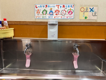 園内の全ての手洗い場に、オートフォームソープディスペンサーを導入しました。 |
