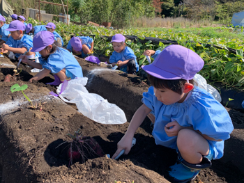 2023年10月13日に、年長と年少がおいもほりに行きました。 |